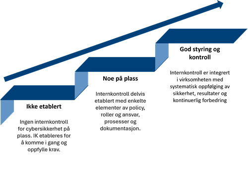 Internkontroll for informasjonssikkerhet handler om å ha oversikt over risiko, gjennomføre nødvendige vurderinger, iverksette tiltak og sikre at tiltakene fungerer etter hensikten i praksis. Systematikken er den samme som i virksomhetens arbeid med HMS og kvalitet, og bygger blant annet på anerkjente rammeverk som NSMs grunnprinsipper for IKT-sikkerhet.