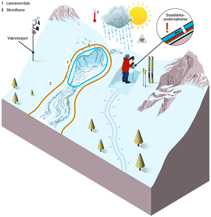 - Værstasjon med minimum temperatur og vind, plassert i høyde med løsneområdene.